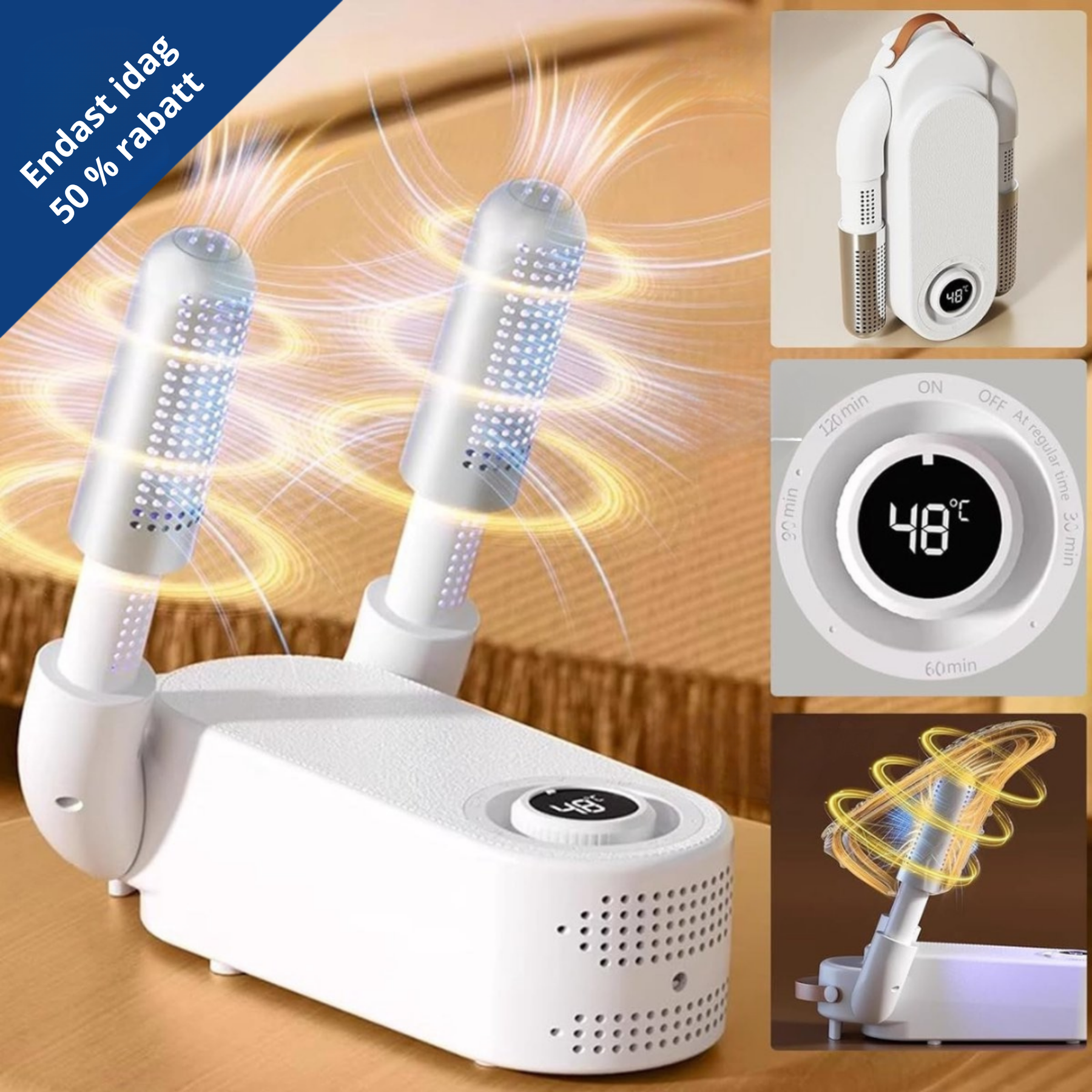 Den smarta varmluftscirkulationen avdunstar fukten snabbt och jämnt, vilket förhindrar bakterier och dålig lukt. Perfekt för regniga dagar, efter träning eller för att hålla dina favoritsneakers fräscha.