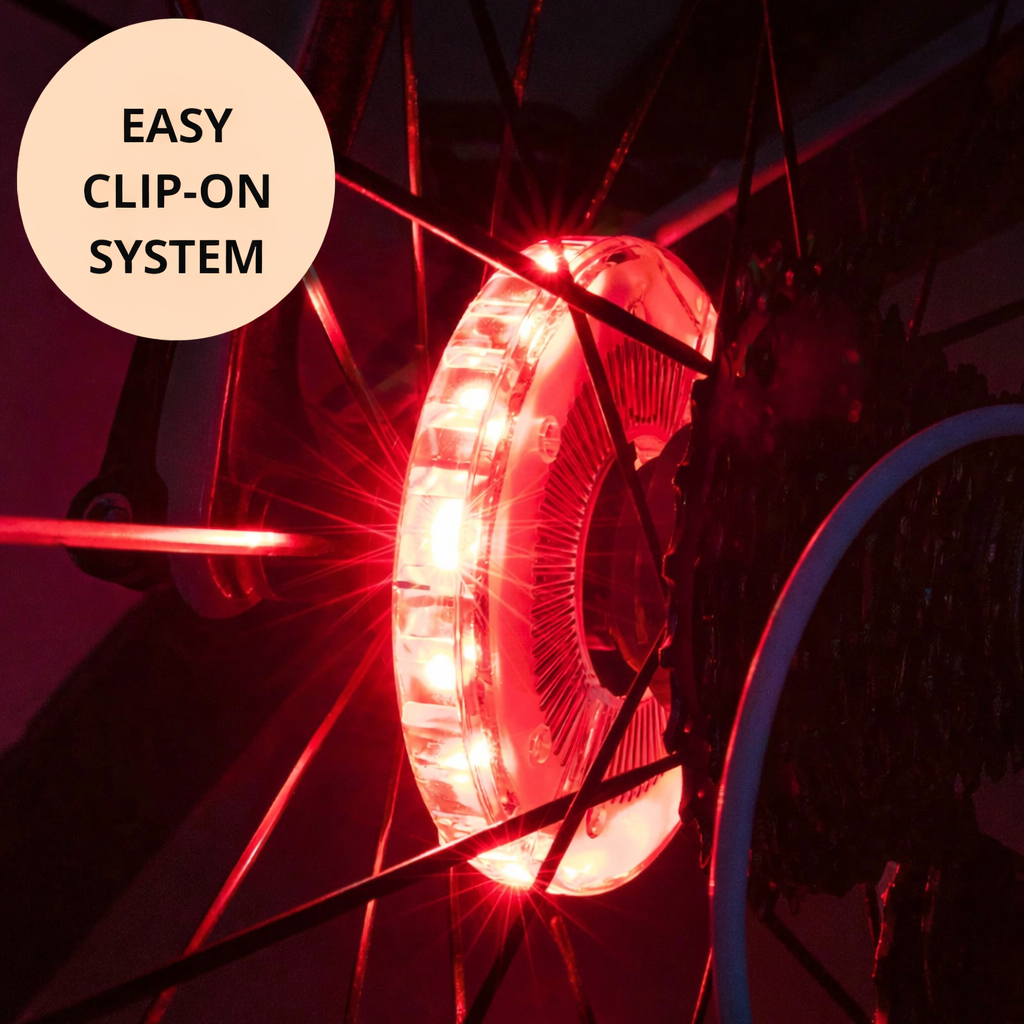 Lampan sitter i hjulnavet, så du syns från alla vinklar.